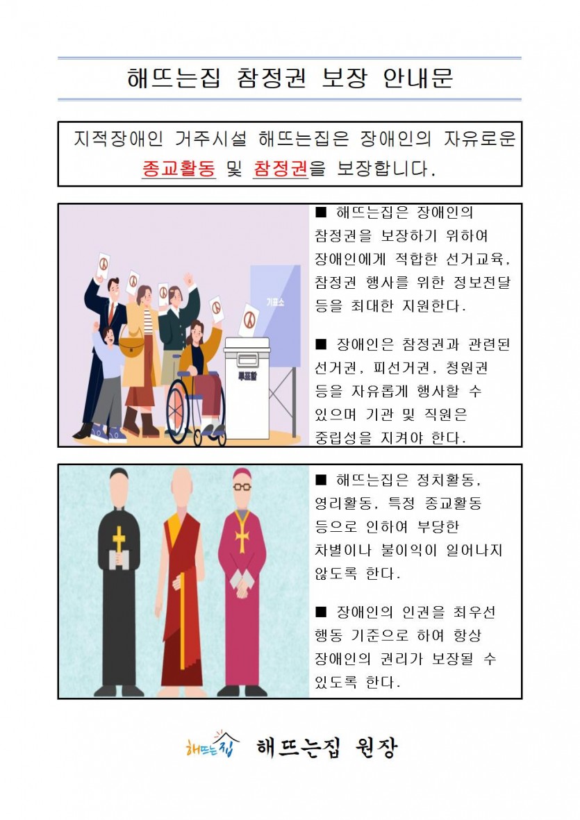 지적장애인 거주시설 해뜨는집은 장애인의 자유로운 종교활동 및 참정권을 보장합니다.